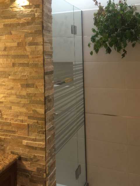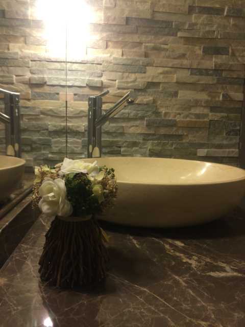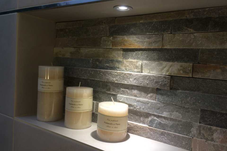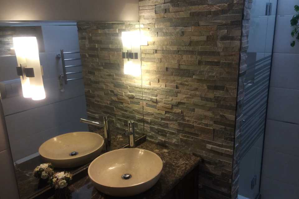 Piedra natural, mármol, y porcelanato fueron algunos de los materiales que elegimos en conjunto con la clienta para darle un toque cálido y moderno al baño principal.